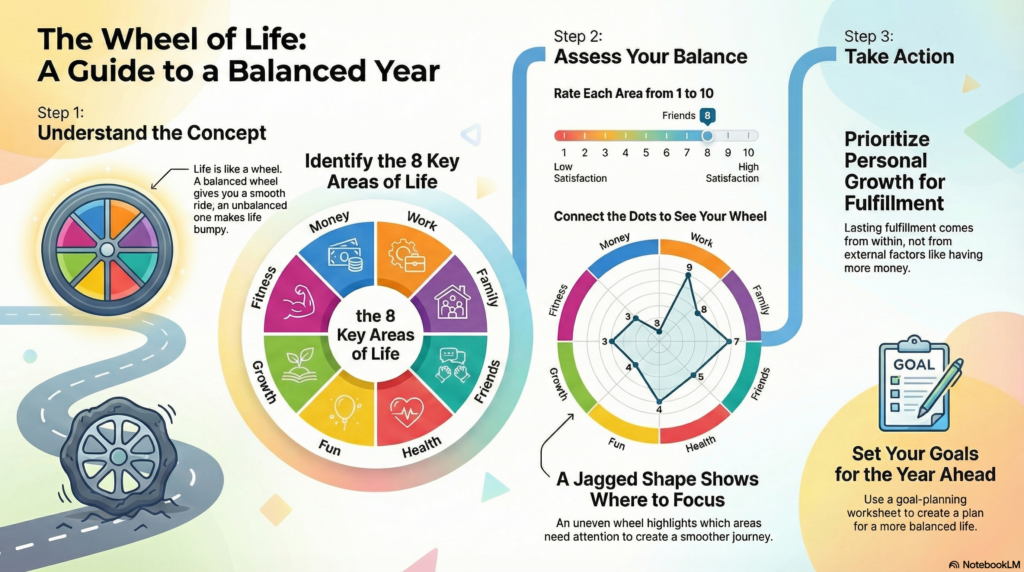 As I look ahead to 2026, I want to share an exercise I do every year that changes how I view my progress. I call it the Wheel of Life. (Download my FREE Year in Review Goal Planning Workbook here).